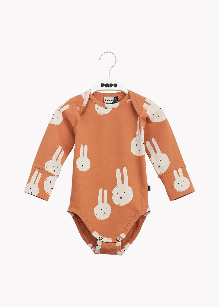 Pitkähihainen body, joka on valmistettu pehmeästä ja joustavasta luomupuuvillaneuloksesta. Pituutta voi hieman säätää haaroissa olevilla painonapeilla. Hanna-Riikka Heikkilän kuosi Best Bunnies Forever! Mielikuvitusmaailmassa seikkailevalla pupulla on paljon ystäviä, joiden kanssa he seikkailevat omissa mielikuvitusmaailmoissaan! Mitäköhän mietteliäät puput tuumivatkaan ja minne ne meidät johdattavat seuraavaksi seikkailemaan? Normaali istuvuus.